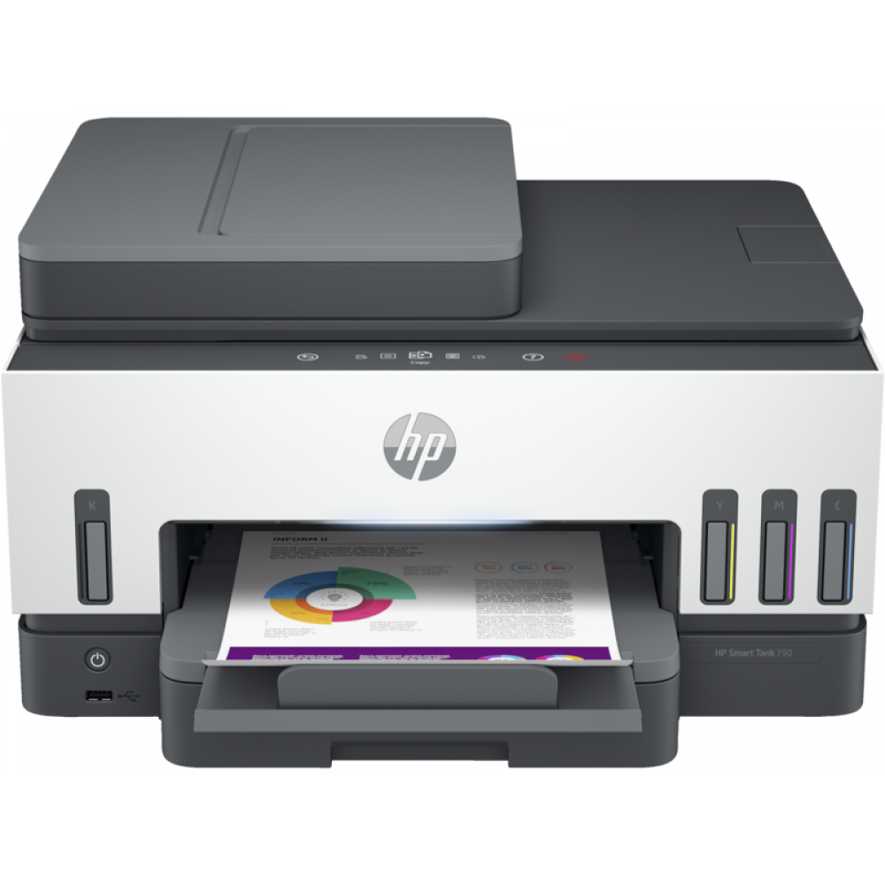 Принтер HP Smart Tank 790 — это многофункциональное устройство с системой непрерывной подачи чернил и технологией термоструйной печати. Оно обеспечивает яркие отпечатки при создании различных документов и изображений. В дополнение к печати, устройство также выполняет функции копирования, сканирования и факса.