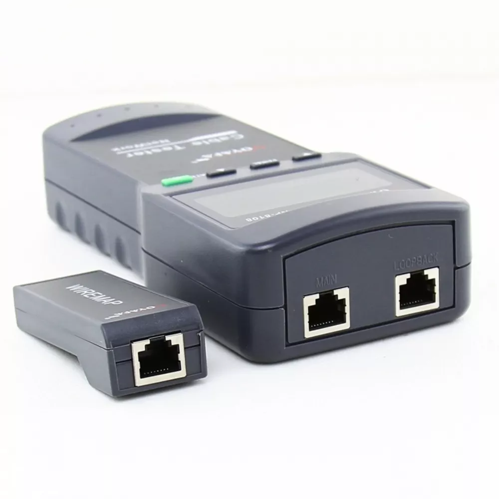 Тестер прост в использовании и состоит из передатчика и приемника, которые подключаются с двух сторон проверяемой линии. Передатчик (основной блок) снабжен ЖК-дисплеем, кнопками управления, а также двумя портам RJ-45. Первый порт (MAIN) является основным, второй порт (LOOPBACK) - ответным. Наличие двух портов на основном блоке прибора позволяют производить диагностику медных патчкордов без использования приемника.