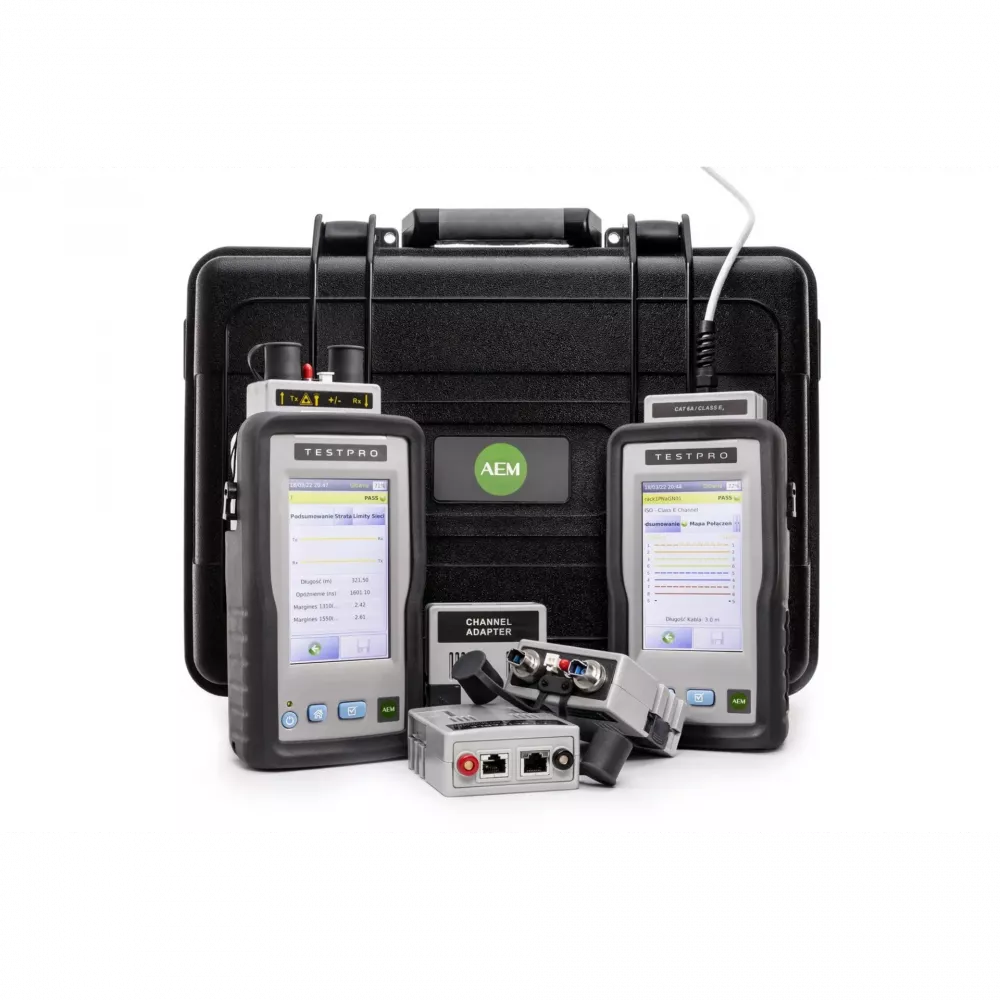 | Комплект поставки | TestPro CV100 - 2 шт; Сертификат о калибровке TestPro - 2 шт; Канальный адаптер AD-CAT8.1-CH - 2 шт; Адаптер постоянной линии AD-CAT6A-PL - 2 шт; Адаптер PoE и верификации 1/2.5/5/10Gb AD-NET-CABLE - 2 шт; Плечевой ремень - 2 шт; Инструкция по началу работы с прибором - 1 шт; Кабель USB - 1 шт; USB накопитель с ПО TestDataPro - 1 шт; Блок питания 220В / ЗУ - 2 шт; Кейс для переноски - 1 шт. |