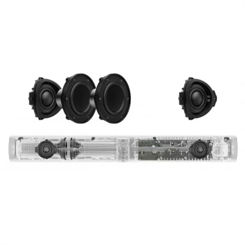 PanaCast 50 оснащен восемью микрофонами профессионального уровня и набором четырех мощных динамиков, разработанных Jabra, — 2 низкочастотных динамика 50 мм и 2 высокочастотных динамика 20 мм.