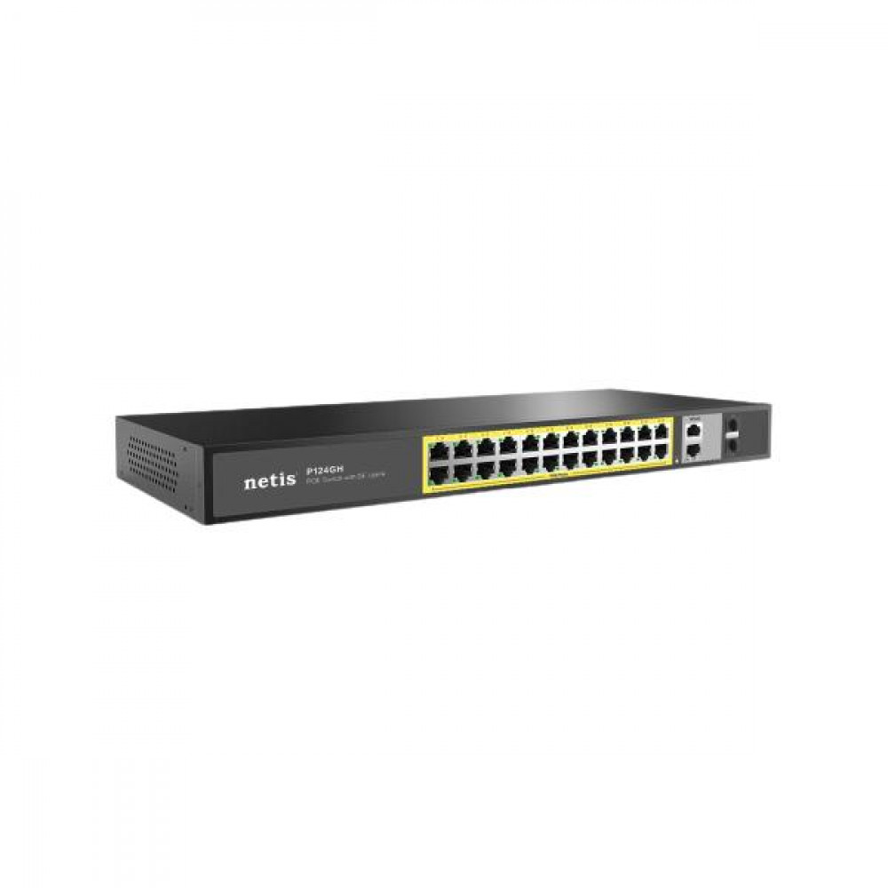 Благодаря наличию 24 портов с поддержкой технологии Power over Ethernet коммутатор NETIS P124GH может питать сетевые устройства по свободным от передачи данных линиям витой пары. Общий бюджет мощности для всех подключенных PoE-устройств равняется 320 Вт.