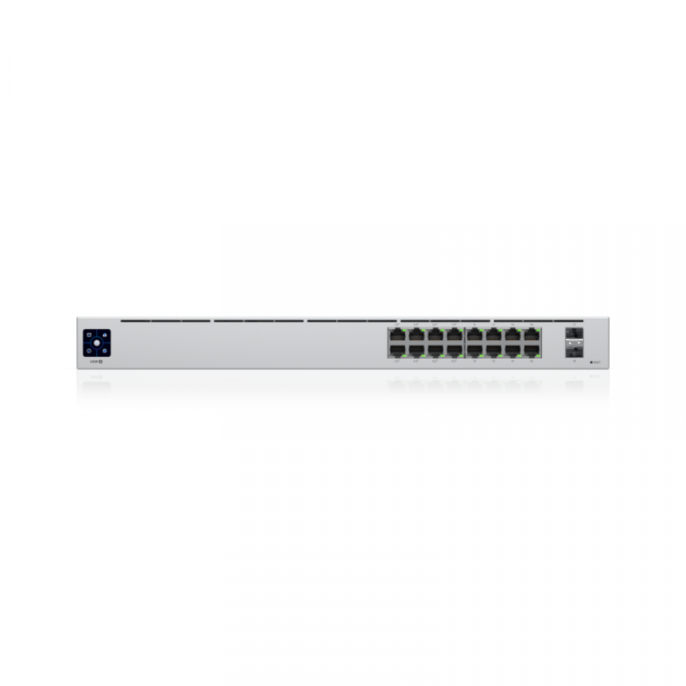 UniFi Switch 16 PoE Gen2 настраиваемый гигабитный коммутатор второго уровня с 16 гигабитными портами Ethernet, включая 8 портов 802.3at PoE+ с автоматическим определением скорости и 2 порта SFP. Коммутатор оснащен сенсорным жидкокристаллическим дисплеем с диагональю 1,3 дюйма для настройки и отображения информации о текущем состоянии. Благодаря глубине 20 сантиметров и компактной системы охлаждения без вентиляторов, может быть легко установлен и в стойку SOHO.