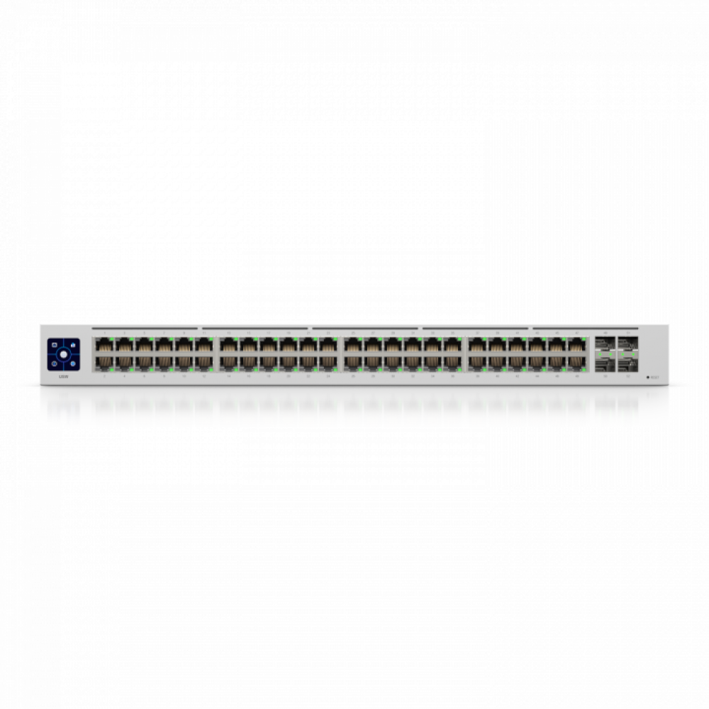 Ubiquiti UniFi Switch 48 Gen2 (USW-48-EU) Полноценный управляемый коммутатор Layer 2, обладающий 48 гигабитными Ethernet-портами. Имеются также 4 гигабитных SFP-порта, обеспечивающих восходящие соединения со скоростью до 1 Гбит/с. Коммутатор обладает сенсорным дисплеем 1.3", компактными размерами и безвентиляторной конструкцией. Тачскрин отображает информацию, необходимую для мониторинга и быстрого устранения неполадок. UniFi Switch 48 Gen2 управляется и настраивается через UniFi Network Controller с поддержкой мобильных приложений UniFi, предлагает обширный набор продвинутых функций и протоколов коммутации Layer 2, включая режим работы (коммутация, зеркалирование или агрегация) на каждый порт.