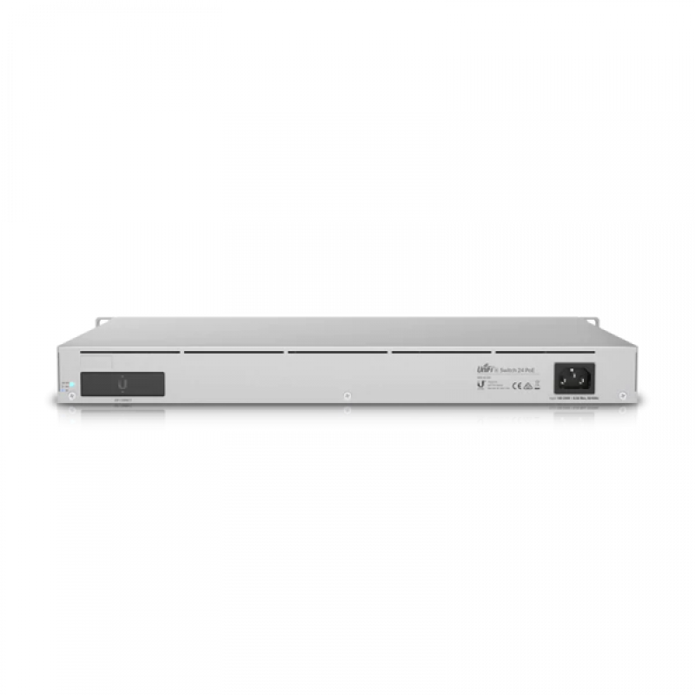 Порты RJ45 и гнезда для установки SFP+ модулей, расположены в одну горизонтальную линию и упрощают процедуры переключения. Высота корпуса UniFi Switch Enterprise 24 PoE составляет 1 Unit, коммутатор предназначен для монтажа в стандартную 19” стойку. Управление осуществляется с помощью мобильного приложения, или в программе Ubiquiti UniFi Controller.