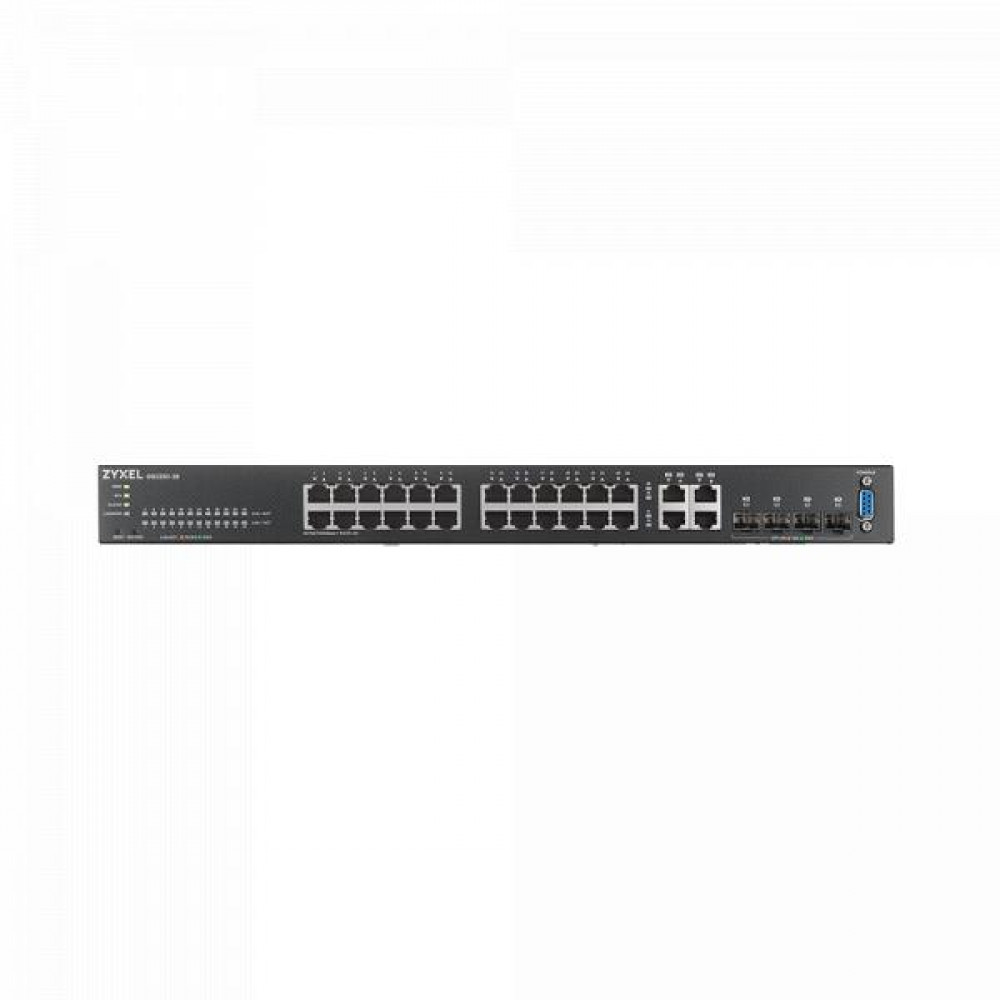 Zyxel GS2220-28 - гигабитный управляемый 24-портовый коммутатор второго уровня (24 x RJ45 + 4 x Combo RJ45/SFP) для конвергентных сетей с передачей данных, видео и голоса.