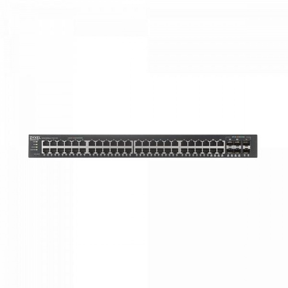 Zyxel GS2220-50 - гигабитный управляемый 48-портовый коммутатор второго уровня (44 x RJ45 + 4 x Combo RJ45/SFP + 2 x SFP) для конвергентных сетей с передачей данных, видео и голоса. Поддерживает три варианта управления: облачное управление Nebula (подписка Nebula Professional Pack на 1 год в комплекте), автономный режим работы и SNMP.