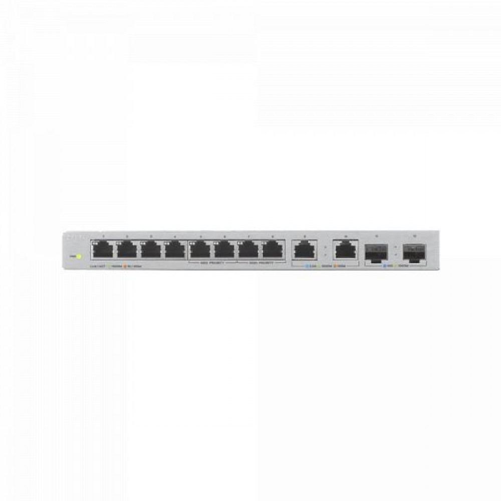 Коммутатор Zyxel XGS1010-12 оборудован восемью гигабитными портами Ethernet, двумя портами 2.5 Gigabit и двумя портами 10 Gigabit SFP+ uplink. Порты 10 Gigabit SFP+ требуются для быстрой передачи данных между клиентскими устройствами и системами хранения NAS или другим оборудованием ядра сети, а порты 2.5 Gigabit нужны для обеспечения работы точек доступа 802.11ax на максимальной скорости работы беспроводного соединения.