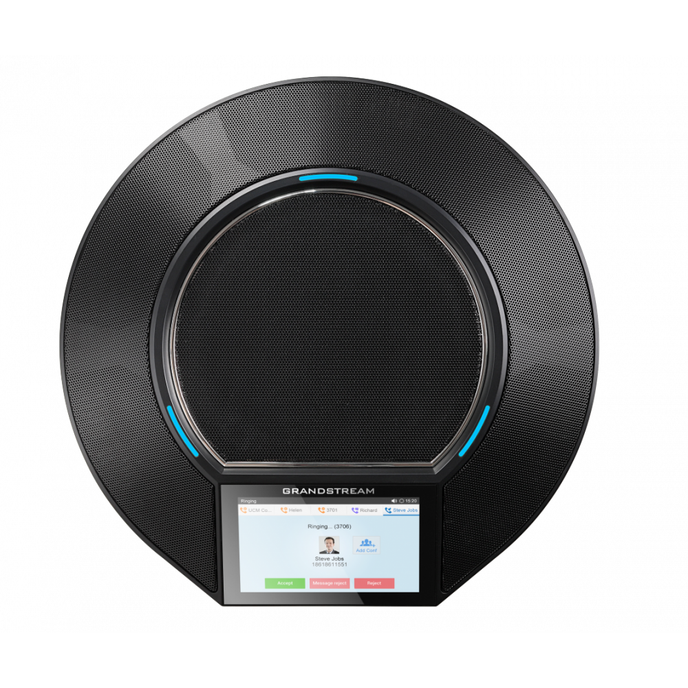 GAC2500 — это качественный IP конференц-телефон, построенный на базе популярнейшей операционной системе Android. Устройство имеет 6 независимых SIP-аккаунтов, 6 телефонных линий и может самостоятельно организовывать конференц-совещания с числом участников до 7. Кроме того, GAC2500 можно использовать как терминал в таких популярных приложениях связи, как Skype и Google Hangouts. Все это возможно благодаря встроенному в телефон Android и большому тачскрин дисплею с диагональю 4.3 дюйма. Grandstream GAC2500 имеет беспроводные модули Bluetooth и WiFi и поддерживает объединение до двух устройств в цепочку для покрытия помещений большой площади.