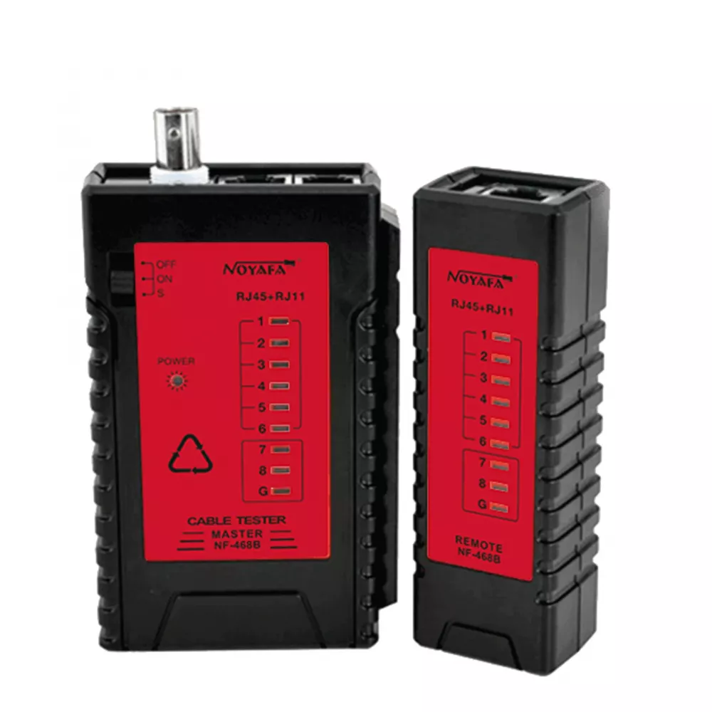 Линейный тестер Noyafa-468B предназначен для проверки витопарного, телефонного кабеля и коаксиального кабеля, оконцованного коннекторами RJ-45, RJ-12, RJ-11 (8P8C, 6P6C, 4P4C), BNC. Данное устройство позволяет определить короткое замыкание, а также целостность и последовательность соединения жил кабеля.