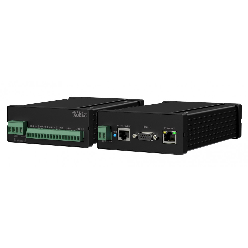 Компактные размеры и очень высокая эффективность позволяют даже спрятать его в шкафу, на подвесном потолке или установить под столом или столом. Различные линейные стереовходы позволяют одновременно подключать разные источники, такие как ноутбуки, CD- или MP3-плееры и планшеты, при подключенном микрофоне. Переключение между входами, регулировка громкости и другие элементы управления функциями могут выполняться несколькими способами: интегрированный веб-сайт позволяет управлять всеми функциями с любого компьютера с помощью веб-браузера без необходимости в дополнительном программном обеспечении, в то время как соединение RS232 позволяет управлять AMP523 с любым устройством, поддерживающим последовательную связь, например с компьютером или даже с системой домашней или промышленной автоматизации. Другой вариант — управлять системой через смартфоны и планшеты с помощью специально разработанного приложения AUDAC Touch ™.
