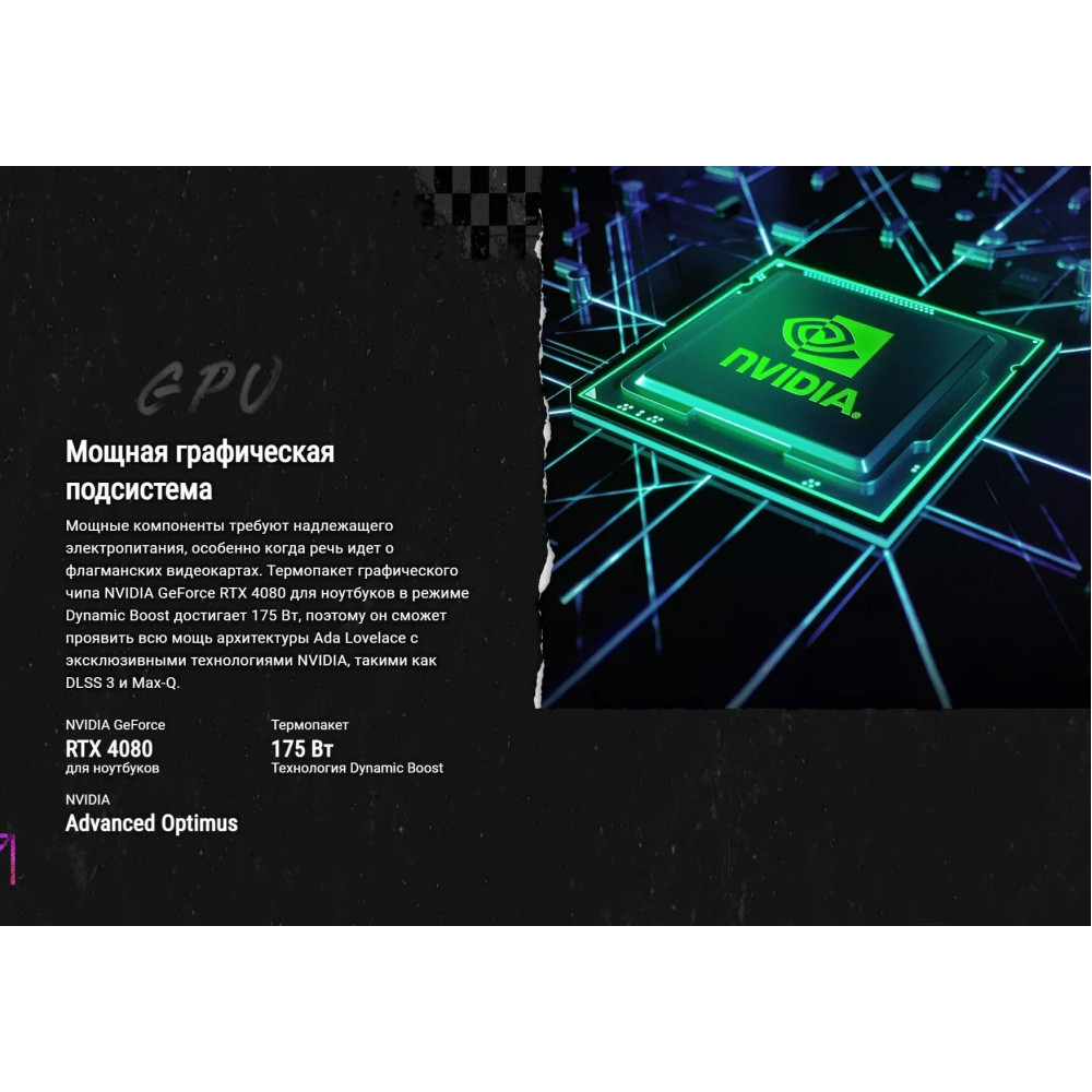 | Дисплей | ROG Nebula 16" QHD+ 16:10 (2560 x 1600, WQXGA) IPS Антибликовое покрытие DCI-P3: 100% Частота обновления: 240 Гц Время отклика: 3 мс G-Sync Pantone Validated Дисплейный мультиплексор + NVIDIA Advanced Optimus Поддержка Dolby Vision HDR: есть |