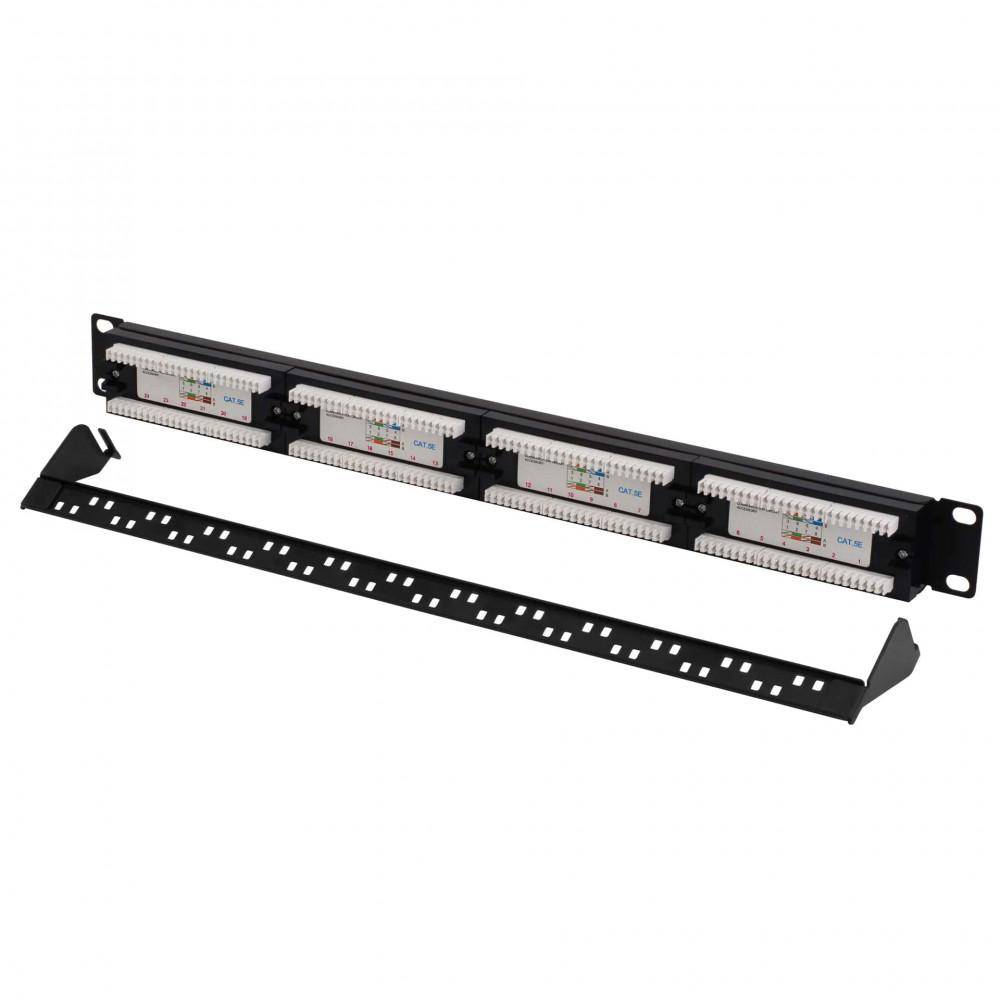 Патч-панель 24 порта RJ-45, категория 5e, неэкранированная, монтаж в 19″ конструктив.