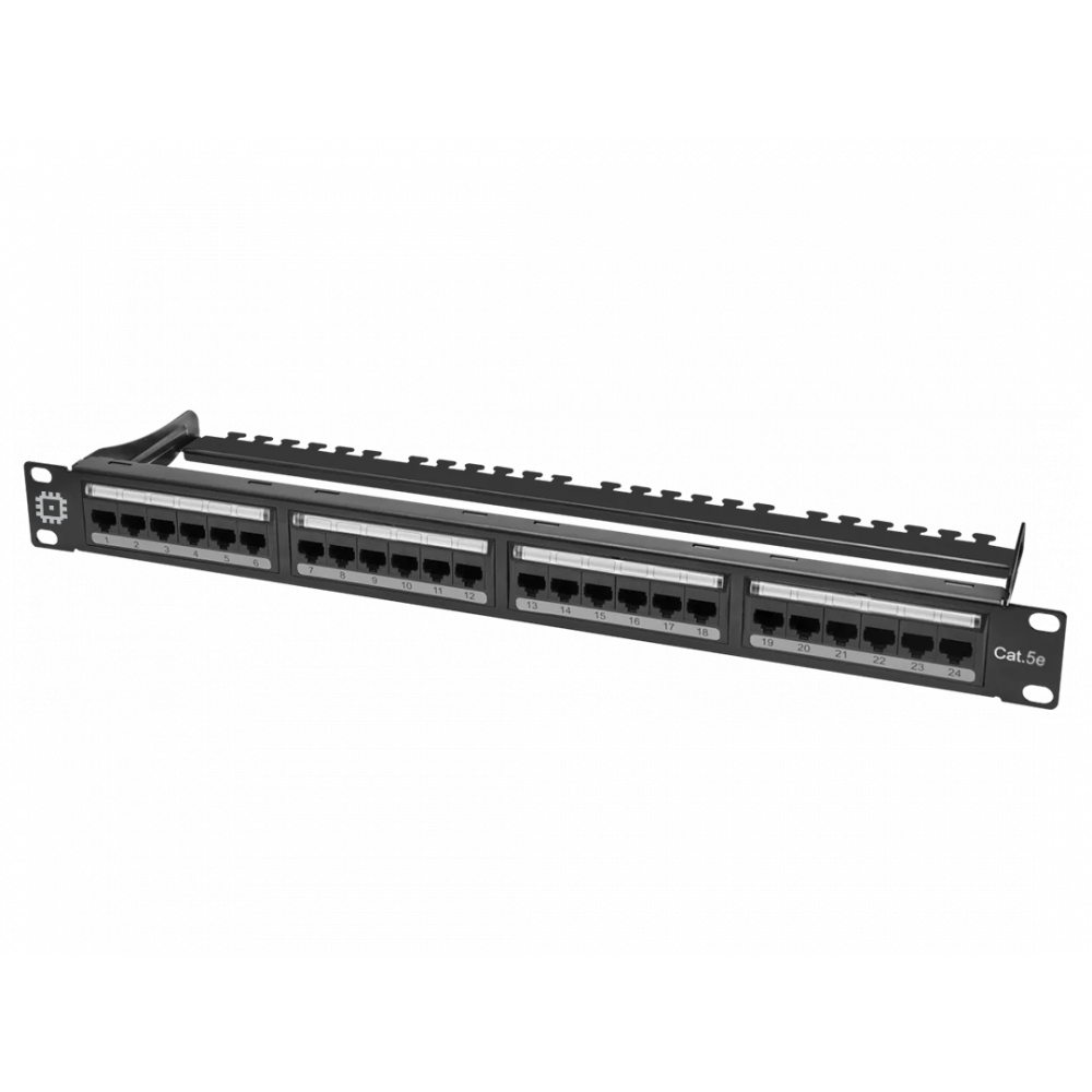 Коммутационная панель Pixietech, 19″ неэкранированная, 1U, 24 порта, cat.6.