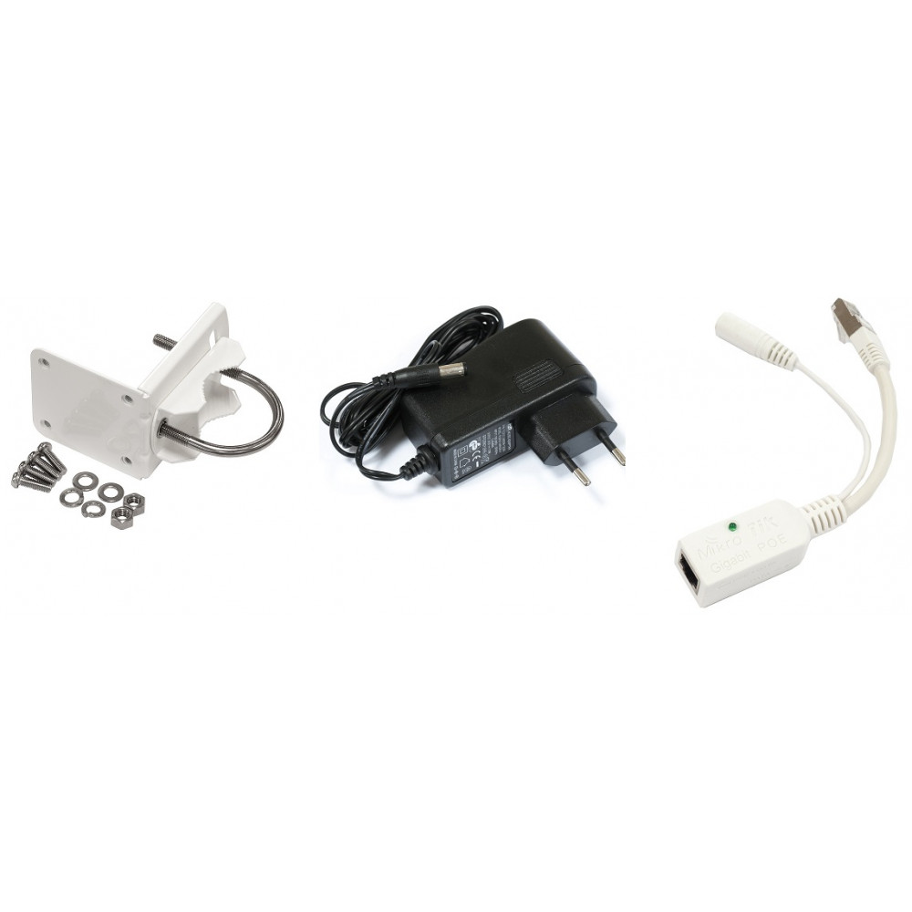 Комплект поставки включает два сопряжённых устройства LHG 60G, два адаптера питания, два гигабитных PoE-инжектора и пару наборов для юстировки.