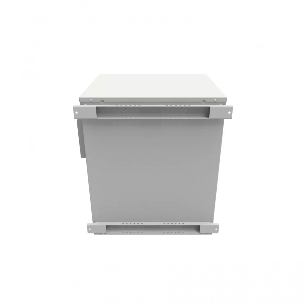 Корпус шкафа имеет сварную металлическую конструкцию, внутри покрыт термоизоляционным негорючим материалом. В основании шкафа предусмотрена съемная заглушка для ввода кабеля. Регулируемые по глубине 19'' направляющие толщиной 1,5 мм.