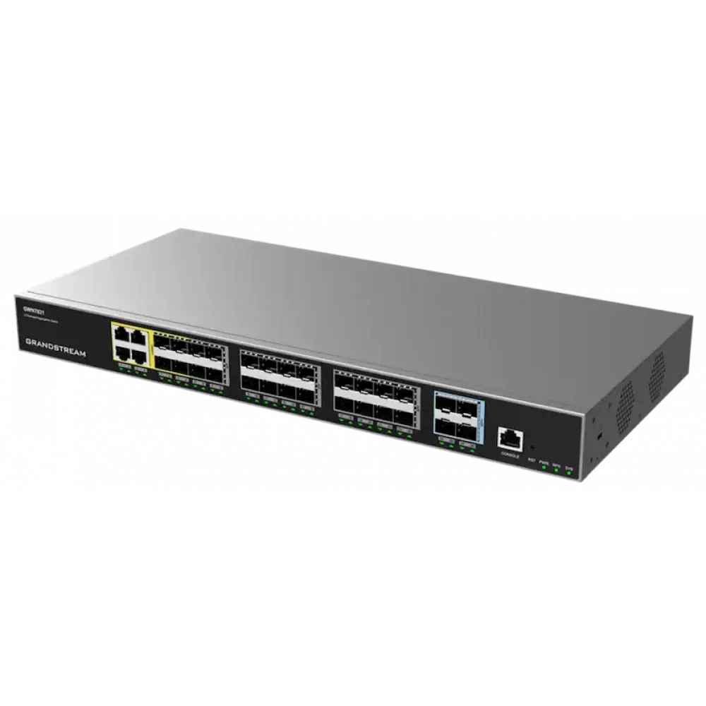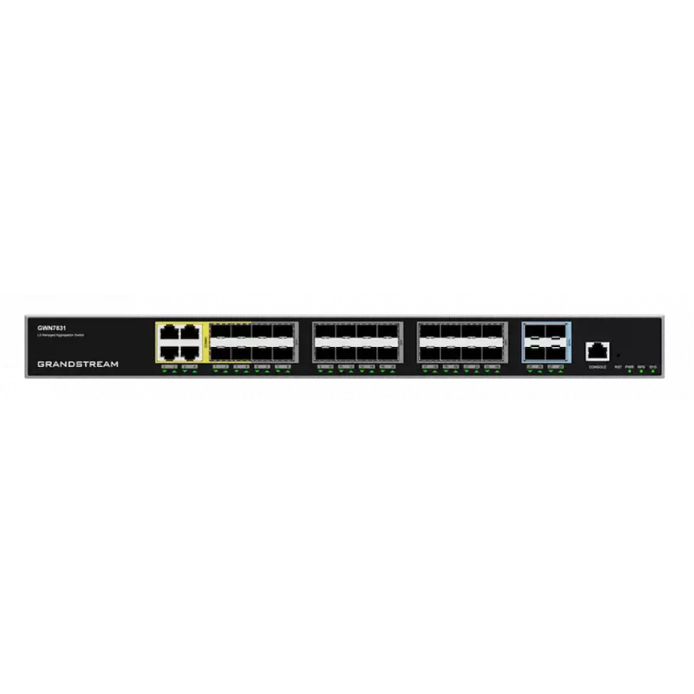 Grandstream GWN7831 — это управляемый коммутатор 3-го уровня, который позволяет средним и крупным предприятиям создавать масштабируемые, безопасные, высокопроизводительные и интеллектуальные бизнес-сети, полностью управляемые. Он имеет 4 Combo Ethernet порта 10/100/1 Мбит/с, 24 порта SFP и 4 порта SFP+ с максимальной коммутационной способностью 4 Гбит/с. Он поддерживает расширенные VLAN для гибкой и сложной сегментации трафика, расширенные возможности QoS для приоритизации сетевого трафика, отслеживание IGMP/MLD для оптимизации производительности сети и комплексные функции защиты от потенциальных атак. GWN7831 можно управлять несколькими способами, включая локальный Web пользовательский интерфейс коммутатора GWN7831 и CLI, интерфейс командной строки. А также поддерживается GWN.Cloud и GWN Manager, облачной и локальной платформой управления сетью Grandstream. Благодаря комплексному качеству обслуживания и гибким настройкам безопасности GWN7831 является лучшим управляемым коммутатором корпоративного уровня для среднего и крупного бизнеса.