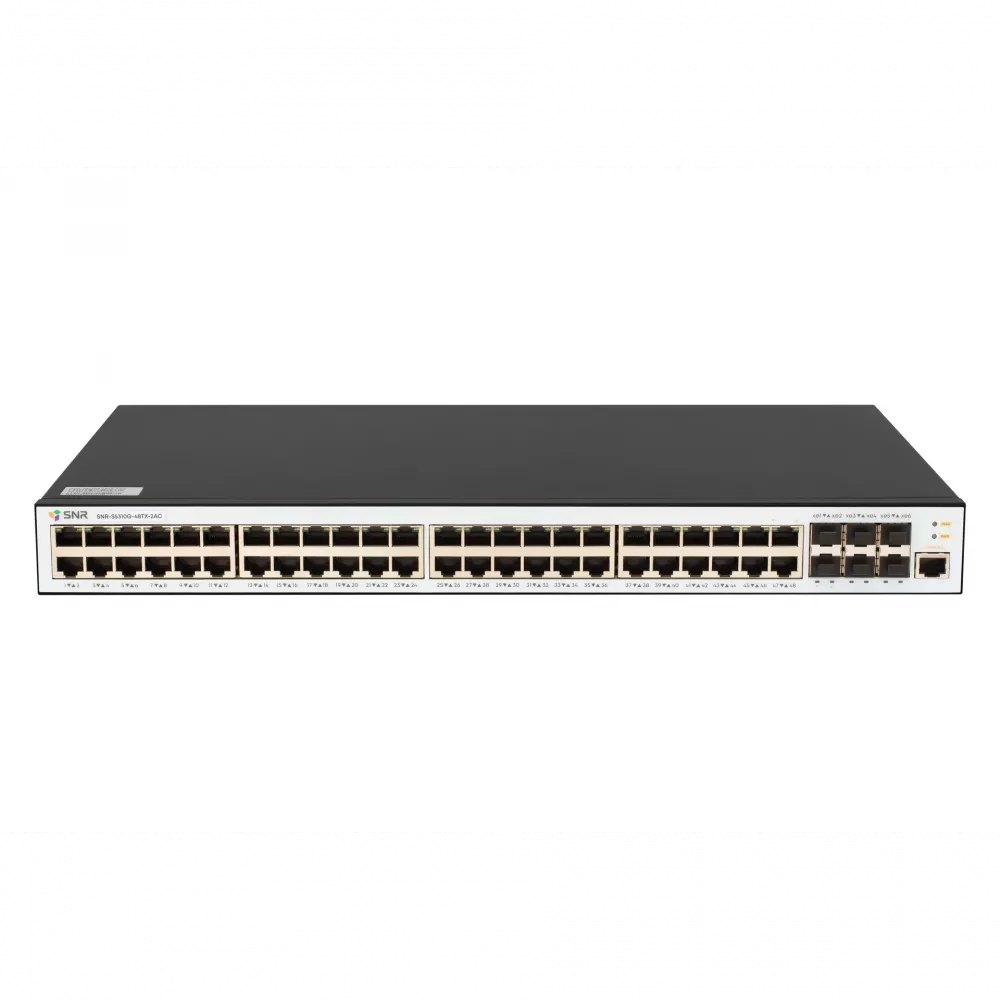 SNR-S5310G-48TX-2AC — управляемый L2+ гигабитный коммутатор с 48 медными портами и 6 10G SFP+ uplink-портами. Идеально подходит для сетей доступа с высокой плотностью, требующих стабильности и отказоустойчивости. Оснащён двумя встроенными блоками питания с возможностью подключения к независимым источникам, что обеспечивает бесперебойную работу при сбоях питания. Поддерживает расширенные L2/L3 функции, включая маршрутизацию, multicast, QoS и защиту.