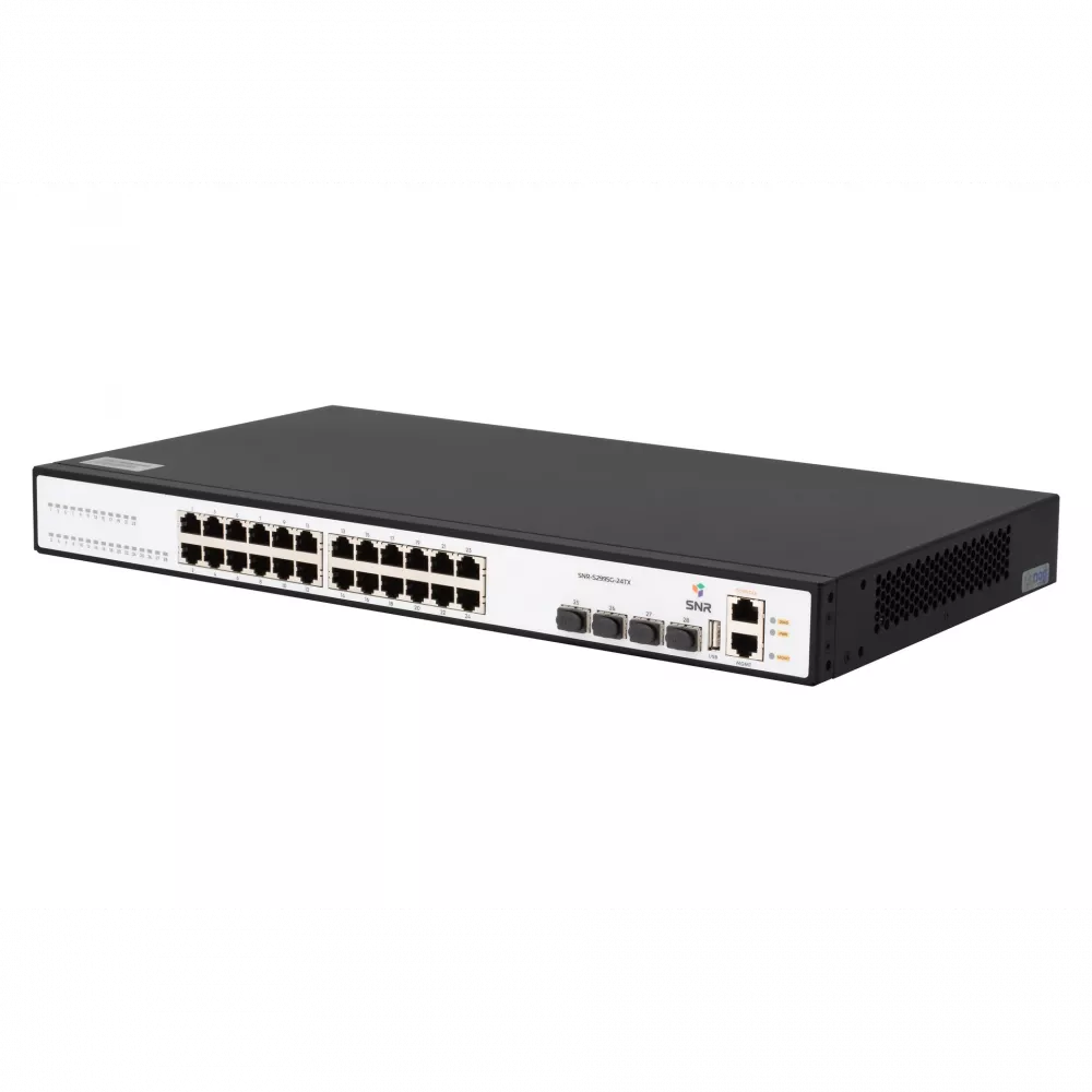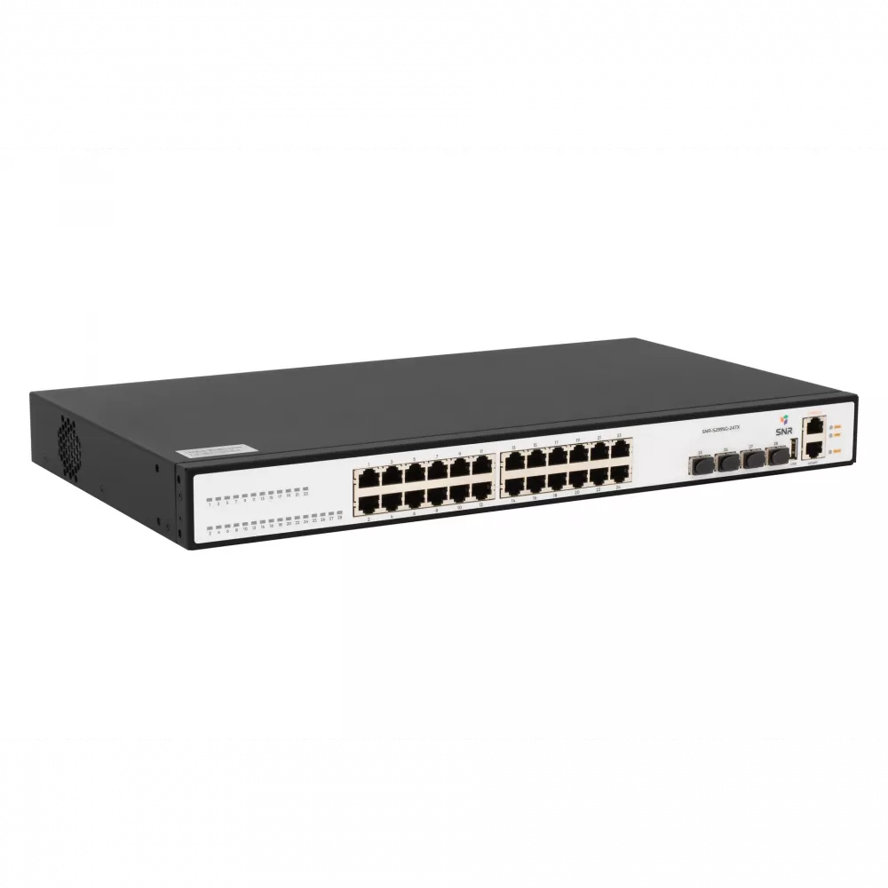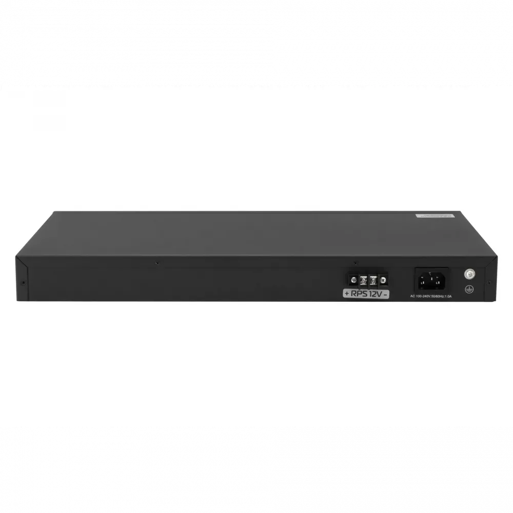 Управляемый L3-коммутатор с 24 гигабитными портами и 4 uplink-портами SFP+ для корпоративных и операторских сетей. Поддерживает динамическую маршрутизацию (OSPF, BGP, RIP), стекирование VSF HA, L2/L3 multicast, QoS и защиту портов. Оснащён встроенным источником питания с поддержкой внешнего аккумулятора 12В (UPS с функцией заряда), что обеспечивает резервирование при отключении электросети.