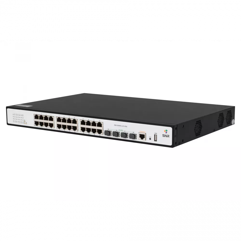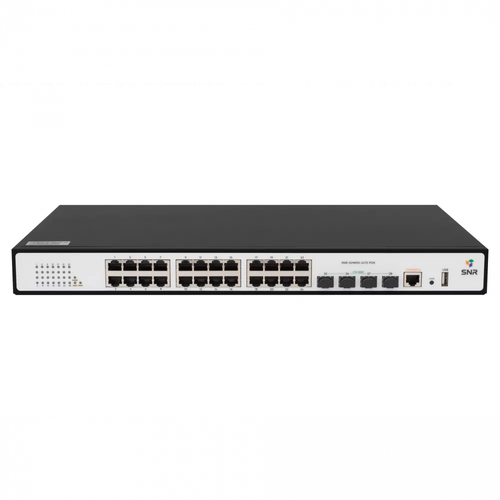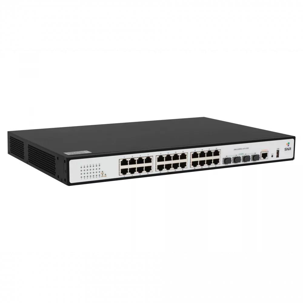 Управляемый коммутатор уровня L2+ SNR-S2989G-24TX-POE предназначен для построения отказоустойчивых и масштабируемых корпоративных и операторских сетей. Оборудован 24 гигабитными портами 10/100/1000Base-T и 4 высокоскоростными SFP+ портами 1/10G, поддерживает PoE (802.3af/at) с общим бюджетом до 370 Вт, что позволяет подключать точки доступа, IP-телефоны и видеокамеры.