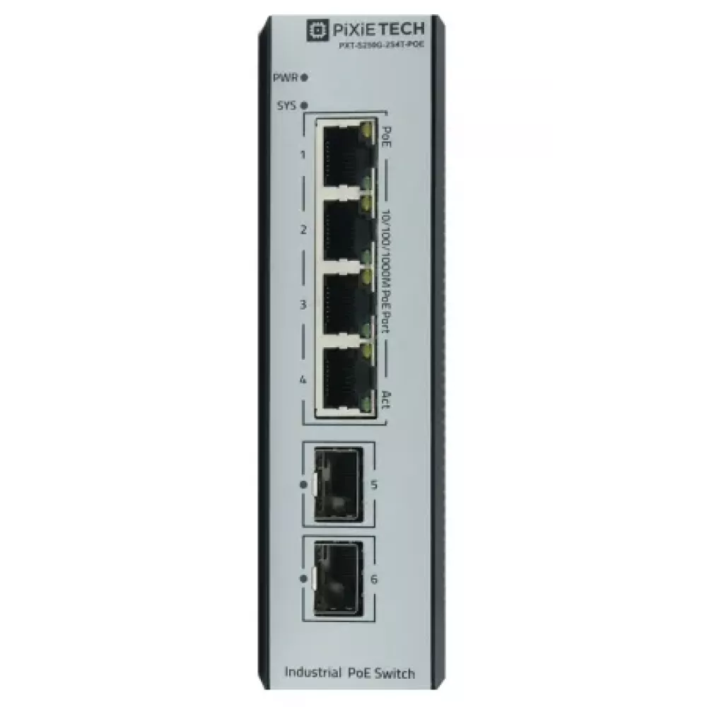 Компактный промышленный L2 PoE-коммутатор с 4 портами RJ-45 и 2 SFP-портами. Идеально подходит для систем видеонаблюдения, промышленной автоматизации и сетей малого масштаба. Поддерживает PoE до 120 Вт, управление через консоль, Web, SNMP и другие интерфейсы. Отличается высокой надёжностью (MTBF >800 000 ч) и пассивным охлаждением для бесшумной работы.