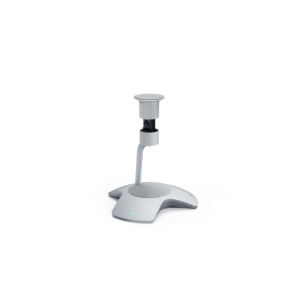 Все-в-одном интегрируя в себе видеокамеру, микрофонный массив и динамики занимает минимум места в переговорной и дает круговой, без «мертвых» зон всесторонний обзор.