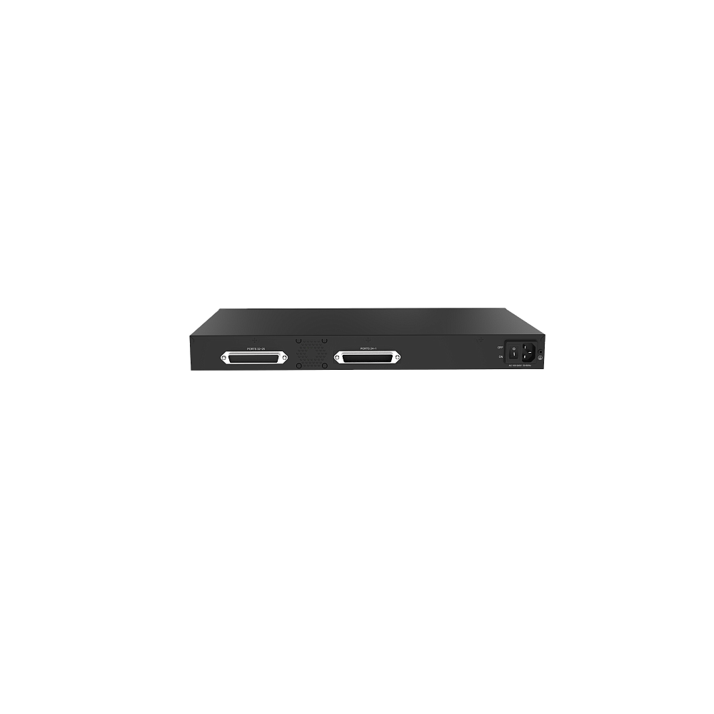 | Физические характеристики | LAN: 1 (10/100Mbps) WAN: 1 (10/100Mbps) 32 порта FXS 1 порт Telco 1 x 50 pin Размер: 440х250x24мм Питание: AC 100~240В/50~60Гц, 12B 5.5A Рабочая температура: от 0°C до 40°C Температура хранения: -20°~65° Влажность: 10~90% |